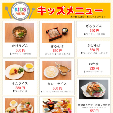 お子様用メニューのご案内