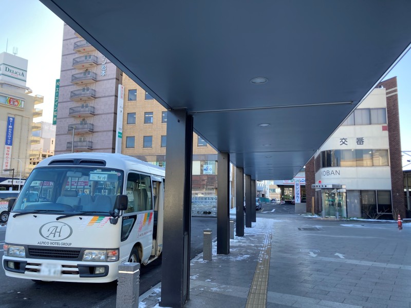 松本駅前交番近くにバスが停車いたします。
